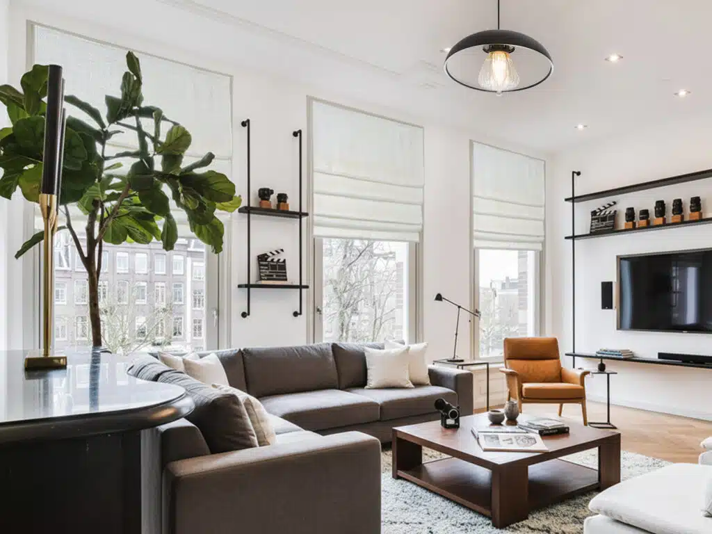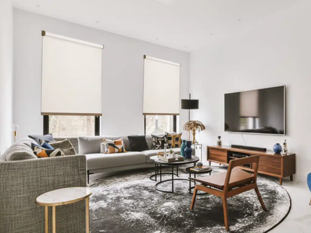 For a minimal, modern look, roller shades are a strong living room choice—especially with room-darkening fabrics that reduce glare without adding bulk.