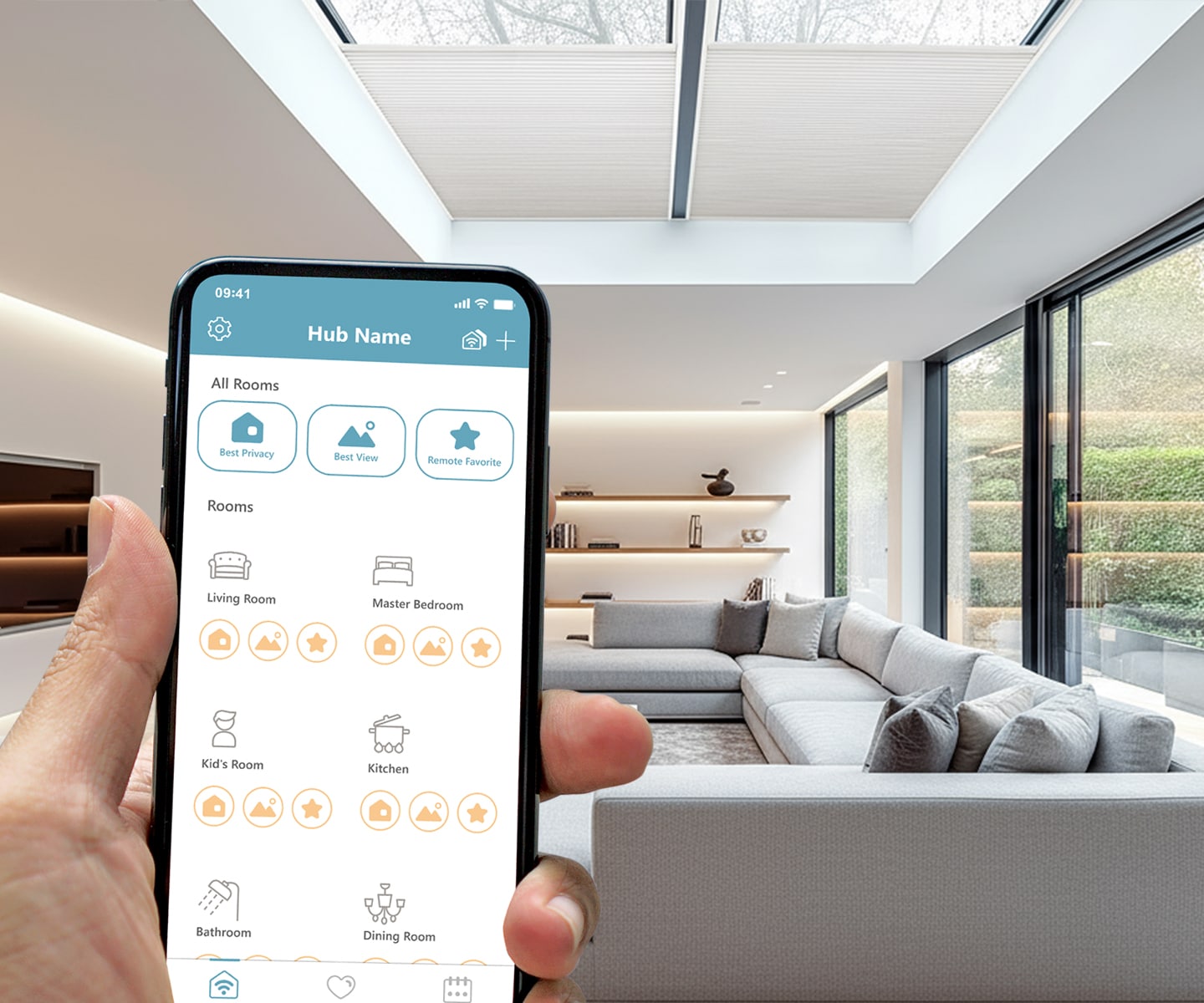 Motorized Honeycomb Skylight shades offer a complete and practical solution for angled or overhead windows that are hard to reach. Designed to stay securely in place, these shades operate smoothly from the top down, maintaining a clean appearance while minimizing fabric stack when open. With integrated light guards and Norman® Smart Motorization options, they provide enhanced light control, convenience, and a refined finish for modern skylight applications.